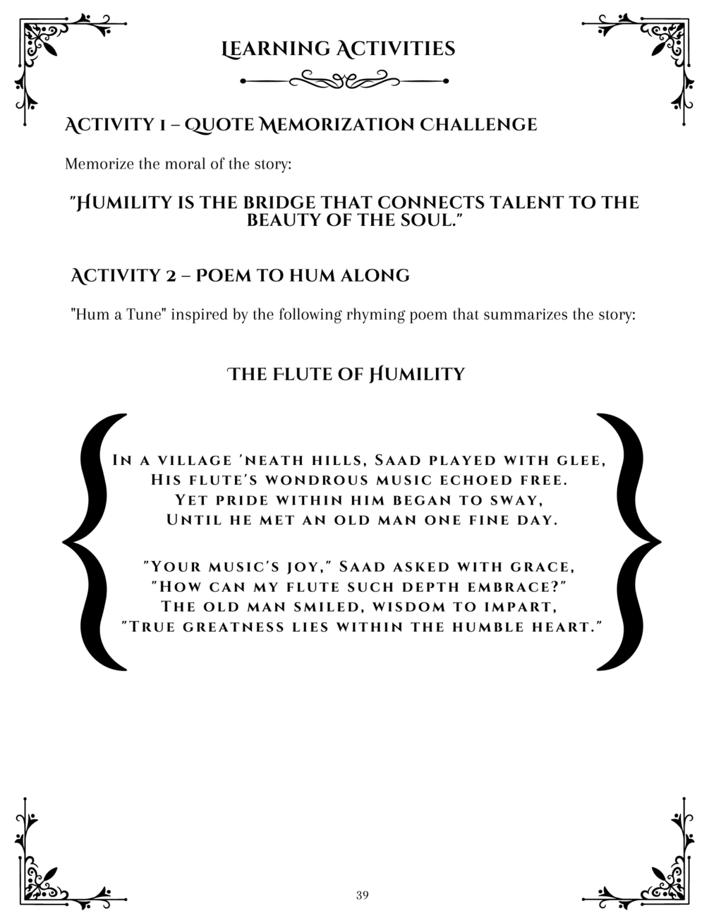 Each of these stories is enriched with a brief rhyming poem and an uplifting statement. These poetic elements and quotes serve to reinforce the core moral or virtue of each narrative. This approach aids young readers in comprehending and internalizing the lessons, serving as gentle reminders that virtues are not abstract ideals but practical guidelines for leading a purposeful and meaningful life.